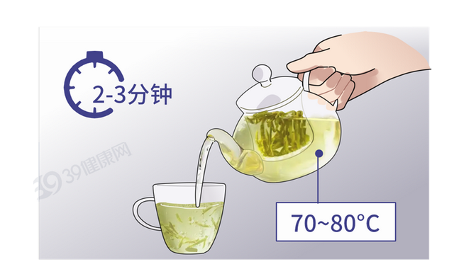 另外,茶叶同样不适宜用过烫的水长期浸泡。绿茶用70~80°C的水浸泡2-3分钟即可。